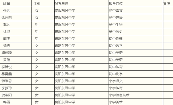 附:《襄陽(yáng)東風(fēng)中學(xué)公開(kāi)招聘擬聘用人員名單》