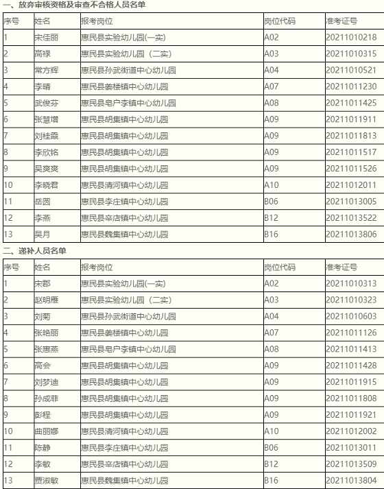 根據(jù)《2021年惠民縣教體系統(tǒng)事業(yè)單位公開招聘人員控制總量幼兒教師簡章》要求,對291人進(jìn)行資格審查,其中放棄審查資格及審查不合格人員13人。詳細(xì)情況如下:
