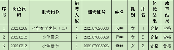 根據(jù)《韶關(guān)市湞江區(qū)2021年“丹霞英才”教育教學(xué)類暨中小學(xué)、幼兒園教師公開招聘公告》等有關(guān)規(guī)定,經(jīng)報(bào)名、資格審查、筆試、面試、體檢、政審、考察等工作程序,擬聘用朱**等3位同志。