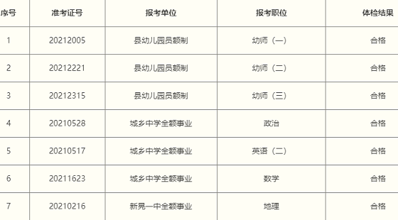 根據《2021年新晃侗族自治縣公開招聘中小學校教師簡章》規(guī)定,現將2021年新晃侗族自治縣公開招聘中小學校教師體檢遞補人員的體檢結果公示如下: