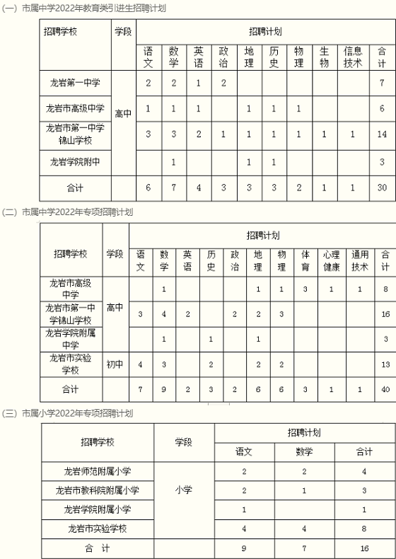 (一)市屬中學(xué)教育類引進(jìn)生:詳見龍巖市教育局官網(wǎng)(公告公示)《龍巖市2022年教育類引進(jìn)生招聘公告》,網(wǎng)址鏈接:http://jyj.longyan.gov.cn/zwgk/gggs/202109/t20210914_1822040.htm。