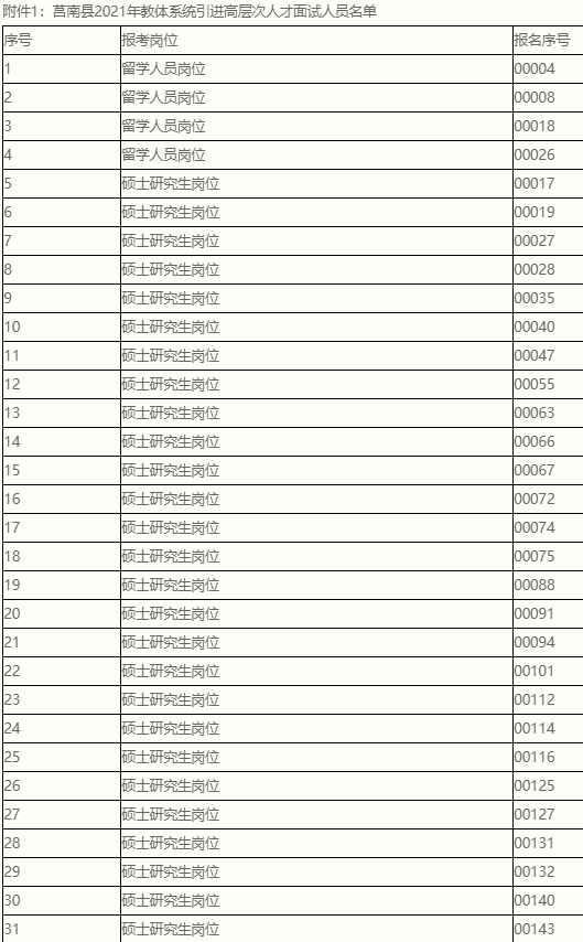 附件:1.莒南縣2021年教體系統(tǒng)引進高層次人才面試人員名單