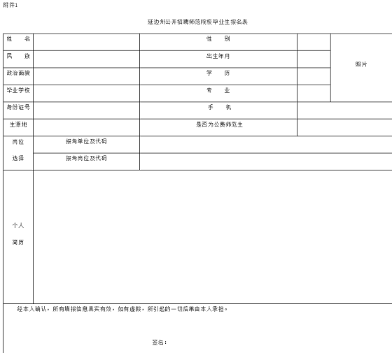 附件:1.延邊州公開招聘師范院校畢業(yè)生報名表
