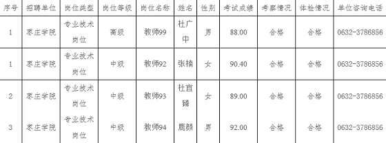 根據(jù)省委組織部、省人力資源和社會(huì)保障廳《關(guān)于2021年事業(yè)單位公開(kāi)招聘工作人員有關(guān)問(wèn)題的通知》(魯人社字[2020]155號(hào))等相關(guān)規(guī)定,按照崗位招聘計(jì)劃,棗莊學(xué)院組織完成了公開(kāi)招聘考試、考察、體檢等工作,現(xiàn)對(duì)棗莊學(xué)院擬聘用人員進(jìn)行公示。公示期為7個(gè)工作日,自2021年11月18日至2021年11月26日(不含節(jié)假日)。公示期間,如對(duì)公示人選有異議,請(qǐng)及時(shí)向省事業(yè)單位公開(kāi)招聘主管機(jī)關(guān)和棗莊學(xué)院反映。