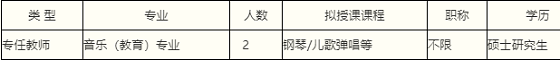 全日制研究生及以上學(xué)歷,有一定聲樂、視唱、演奏基礎(chǔ),系統(tǒng)掌握音樂教育的基礎(chǔ)理論與方法,具有一定演奏經(jīng)驗(yàn)技巧及進(jìn)行教學(xué)研究的能力,能夠適應(yīng)音樂教育課程改革,了解當(dāng)代音樂教育發(fā)展信息和教改動(dòng)態(tài),具有一定的音樂創(chuàng)新教育工作能力,畢業(yè)于名;蚪(jīng)驗(yàn)豐富者條件可適當(dāng)放寬至本科。