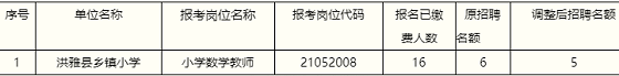 2021年下半年洪雅縣公開考試招聘中小學教師的部分崗位招聘名額調(diào)整情況表調(diào)減招聘名額的崗位
