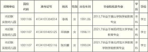 2021年度市婦聯(lián)實(shí)驗(yàn)幼兒園公開招聘擬聘用人員名單