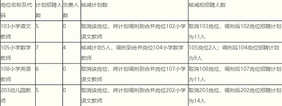 按照《2021年陽谷縣第二批公開招聘教師招聘簡章》的規(guī)定,對應(yīng)聘人數(shù)達不到規(guī)定筆試開考比例的招聘崗位,計劃招聘1人的,取消招聘崗位;計劃招聘2人及以上的,按規(guī)定的比例相應(yīng)核減招聘計劃。合并招聘崗位內(nèi)個別崗位因報名人數(shù)不足取消或核減的招聘計劃,調(diào)劑到該合并招聘崗位內(nèi)報考比例較高的崗位。根據(jù)報名繳費人數(shù),現(xiàn)將核減計劃的崗位情況公告如下: