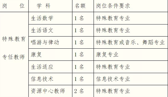 符合以上各崗位應(yīng)聘者中,優(yōu)先考慮以下人員:有特殊教育學(xué)校工作經(jīng)歷者、作為主研人員榮獲市級(jí)及以上課題研究成果者、研究生、區(qū)級(jí)及以上名優(yōu)教師;有融合教育3年以上工作經(jīng)驗(yàn)者優(yōu)先錄用為資源中心教師。