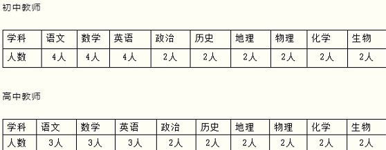 烏海衡實(shí)中學(xué)成立于2019年6月,現(xiàn)有155名教職工,初中部三個(gè)年級,一千多名學(xué)生,18個(gè)教學(xué)班。學(xué)校計(jì)劃明年開設(shè)高中部,為滿足辦學(xué)發(fā)展需求,現(xiàn)招聘初、高中教師,具體信息如下: