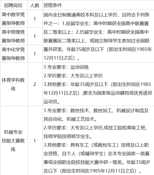 (1)高中數(shù)學、物理、化學競賽指導教師崗位