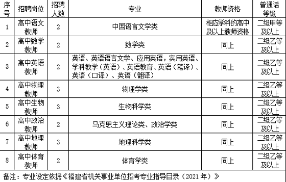 為滿足教育教學(xué)發(fā)展的需要,提高學(xué)校教師隊伍整體素質(zhì),根據(jù)學(xué)校實際情況,現(xiàn)制定莆田華僑中學(xué)考核招聘2022年新任教師工作方案如下: