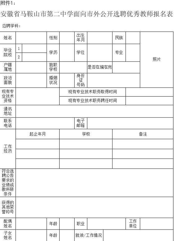 安徽省馬鞍山市第二中學(xué)面向市外公開選聘