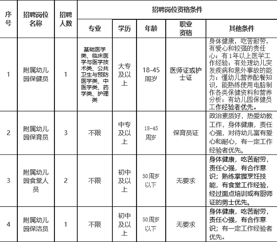 根據(jù)工作需要,欽州幼兒師范高等?茖W(xué)校面向社會(huì)公開招聘7名編外工作人員,F(xiàn)將有關(guān)事項(xiàng)公告如下:
