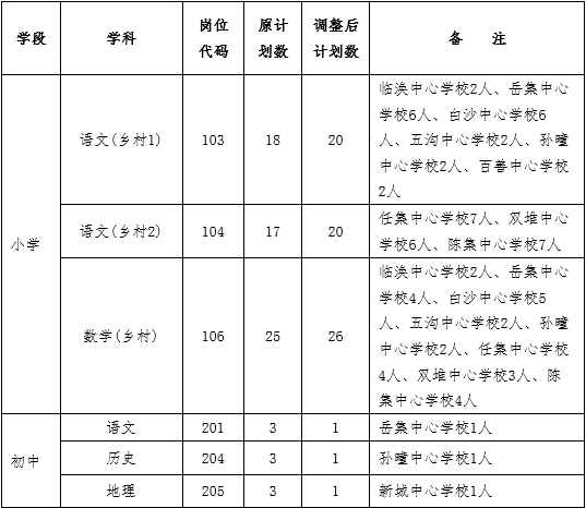 2021年濉溪縣公開招聘非在編中小學教學人員部分職位職數調整一覽表