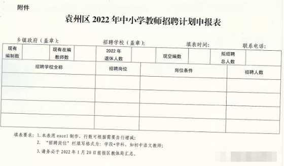 附件:袁州區(qū)2022年中小學(xué)教師招聘計(jì)劃申報(bào)表