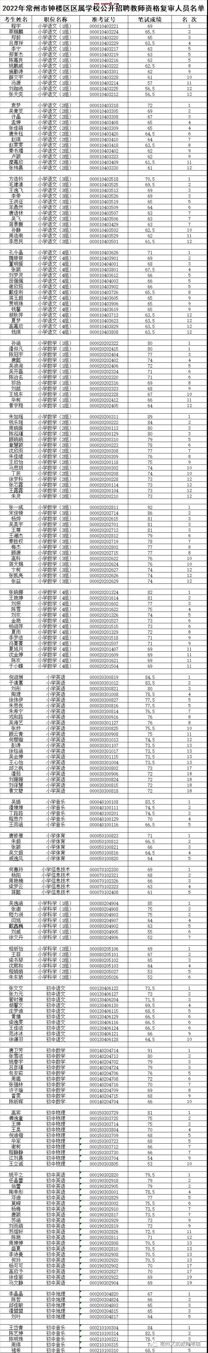 根據(jù)《2022年常州市鐘樓區(qū)區(qū)屬學(xué)校公開(kāi)招聘教師公告》的相關(guān)要求,常州市鐘樓區(qū)區(qū)屬學(xué)校2022年公開(kāi)招聘教師統(tǒng)一筆試工作已經(jīng)結(jié)束,現(xiàn)將進(jìn)入資格復(fù)審人員名單予以公布: