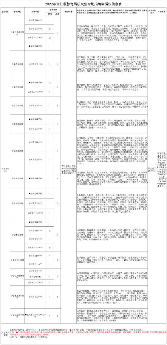 1.2022年臺江區(qū)教育局研究生專場招聘會崗位信息表