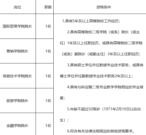 為滿足我校事業(yè)發(fā)展需要,依據(jù)相關(guān)規(guī)定,結(jié)合學(xué)校實際情況,現(xiàn)面向全國公開選拔我校二級專業(yè)教學(xué)學(xué)院院長5名,制定方案如下。