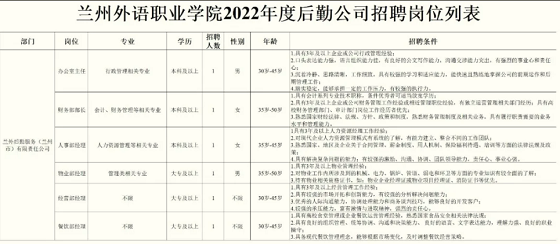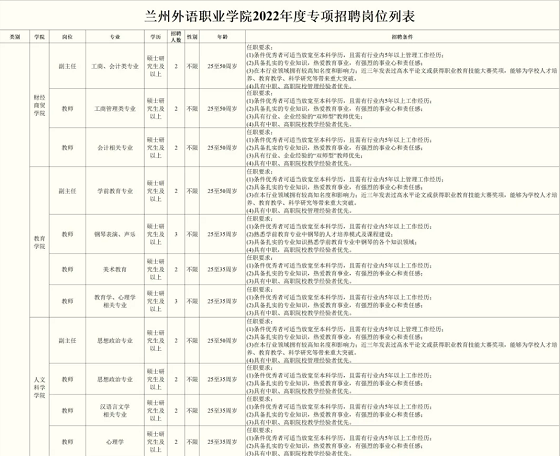 7.具備崗位要求的其他條件(見《蘭州外語職業(yè)學(xué)院2022年度專項(xiàng)招聘崗位列表》)。