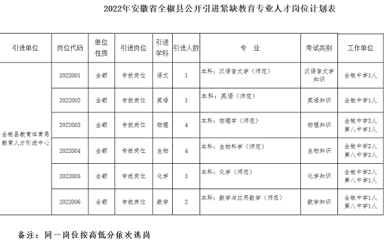 附件:《2022年安徽省全椒縣公開引進緊缺教育專業(yè)人才崗位計劃表》