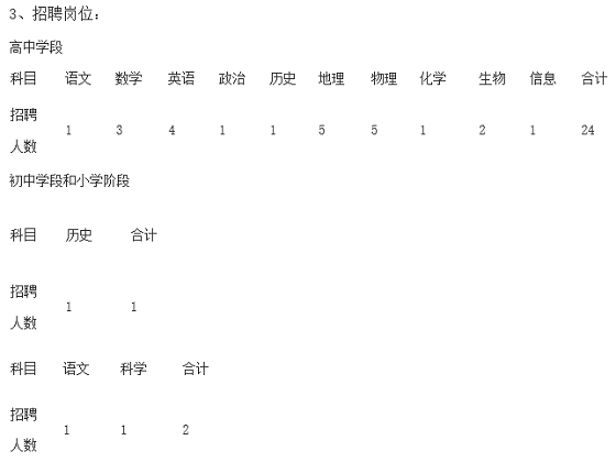 3、全日制大學(xué)本科畢業(yè),取得相關(guān)學(xué)科教師資格證。教育部直屬師范大學(xué)畢業(yè)生,師范類大學(xué)研究生優(yōu)先錄用。