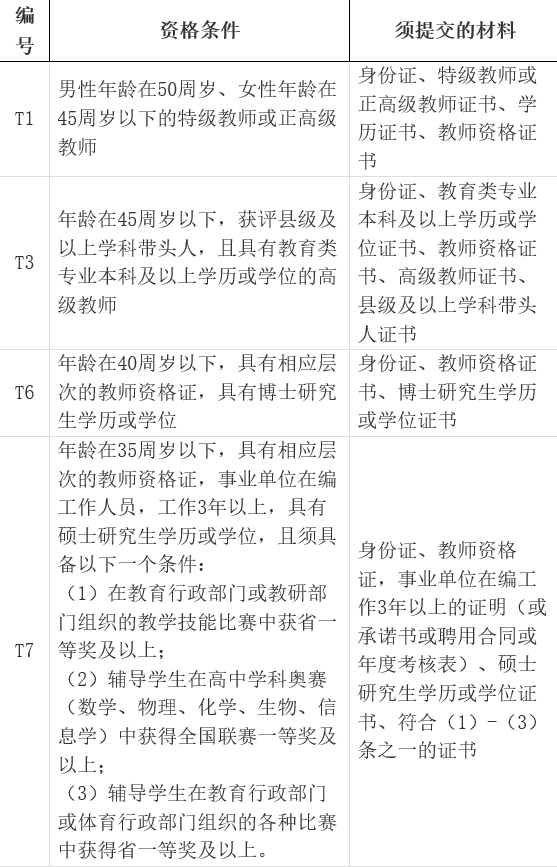 熱誠(chéng)歡迎符合下表資格條件的優(yōu)秀骨干教師選擇我校。請(qǐng)按照下表“須提交的材料”要求向郵箱cflsbgs@163.com提交材料和《長(zhǎng)沙市教育局直屬學(xué)校引進(jìn)優(yōu)秀骨干教師信息表》(見附件)照片或掃描件(“誠(chéng)信承諾”中必須有手書簽名)。