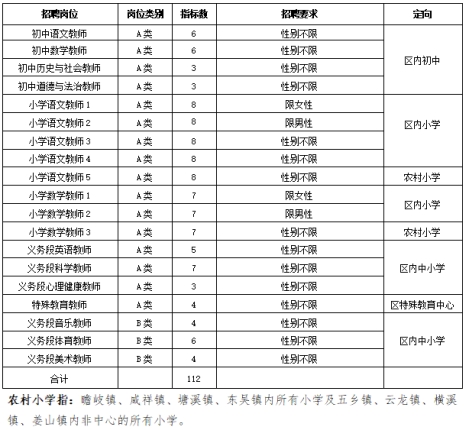 為推進區(qū)域教育人才建設(shè),根據(jù)鄞州區(qū)事業(yè)單位公開招聘有關(guān)規(guī)定,寧波市鄞州區(qū)教育系統(tǒng)決定面向社會公開招聘中小學事業(yè)編制教師112名,F(xiàn)就有關(guān)事項公告如下: