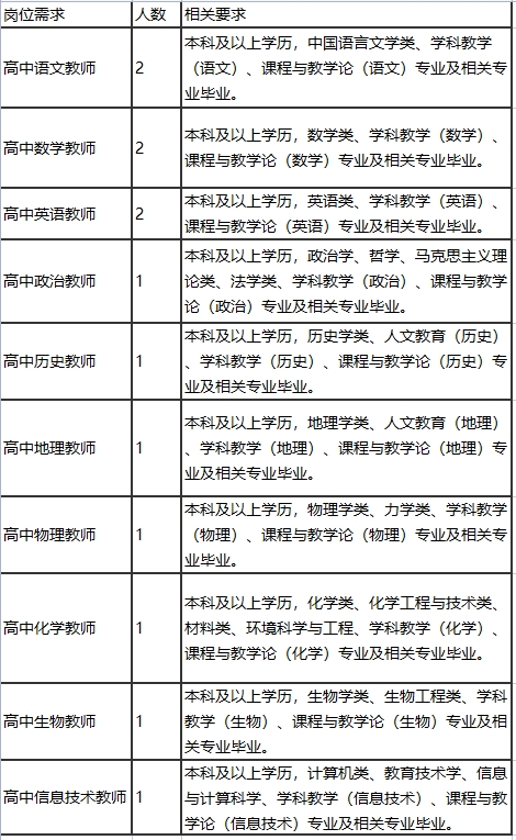 現(xiàn)根據(jù)學(xué)校發(fā)展需要,2022學(xué)年第一學(xué)期(2022年8月)有以下崗位需求,公開招聘優(yōu)秀教師,具體崗位如下: