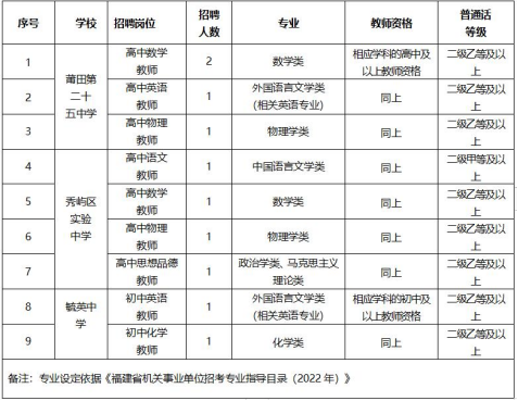 為滿足教育教學(xué)發(fā)展的需要,提高學(xué)校教師隊伍整體素質(zhì),現(xiàn)制定秀嶼區(qū)2022年初高中新任教師專項招聘方案如下: