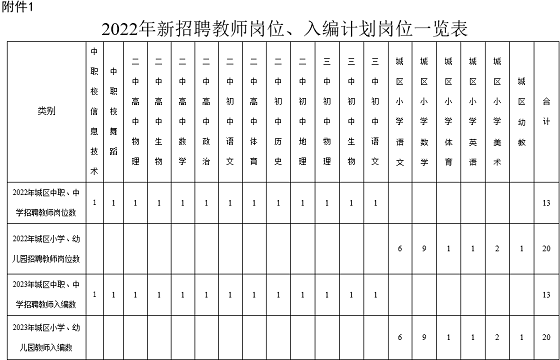 1.2022年新招聘教師崗位、入編計(jì)劃一覽表