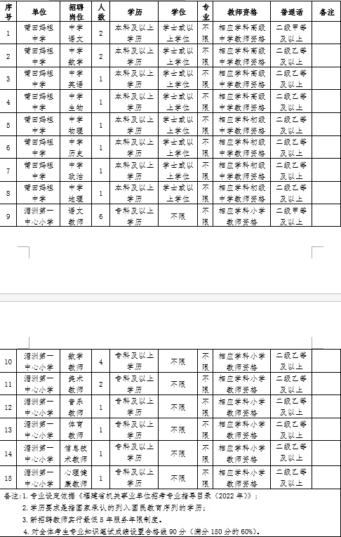 為確保湄洲島中小學校正常教學對師資的需要,根據(jù)閩教規(guī)〔2022〕3號的有關規(guī)定精神,結合我區(qū)實際情況,湄洲島教師招聘領導小組將組織實施2022年莆田市湄洲島中小學校公開招聘新任教師工作(參加福建省考試院組織的教師招聘筆試),現(xiàn)將有關事項公告如下: