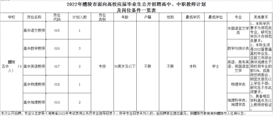4、本次招聘崗位要求的專業(yè)參照《2022年湖南省考試錄用公務(wù)員專業(yè)指導(dǎo)目錄》。所學(xué)專業(yè)未列入的,由招聘單位提出意見,報醴陵市教育局和醴陵市人社局認(rèn)定。招聘崗位要求是專業(yè)大類的,考生所學(xué)專業(yè)只需符合指導(dǎo)目錄大類中任意一個。要求具體專業(yè)的,考生所學(xué)專業(yè)與招聘崗位要求的專業(yè)需一致。本次招聘所設(shè)專業(yè)不區(qū)分專碩和學(xué)碩。