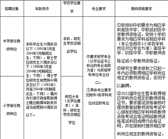 本批次招聘對(duì)象不含福州市在編教師。其他編制內(nèi)人員報(bào)考,需在面試資格審核時(shí)提供經(jīng)單位主管部門同意并加蓋公章的《同意報(bào)考函》;民辦學(xué)校在崗人員報(bào)考,需在面試資格審核時(shí)提供本校主要負(fù)責(zé)人簽名并加蓋公章的《同意報(bào)考函》。