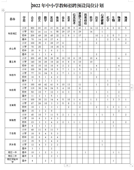 2022年,新疆和田地區(qū)中小學(xué)教師招聘預(yù)計(jì)5、6月份啟動,計(jì)劃拿出部分中小學(xué)教師崗位,面向其他省市有關(guān)高校招聘優(yōu)秀畢業(yè)生,F(xiàn)發(fā)布預(yù)公告如下: