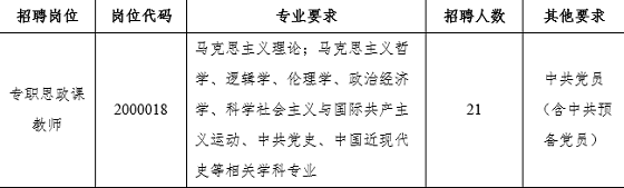 本次共招聘專職思政課教師21人,全部納入事業(yè)編。具體招聘崗位如下: