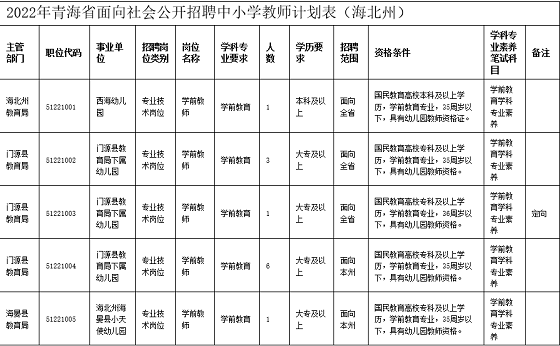 附件6.2022年青海省面向社會(huì)公開(kāi)招聘中小學(xué)教師計(jì)劃表(海北州)