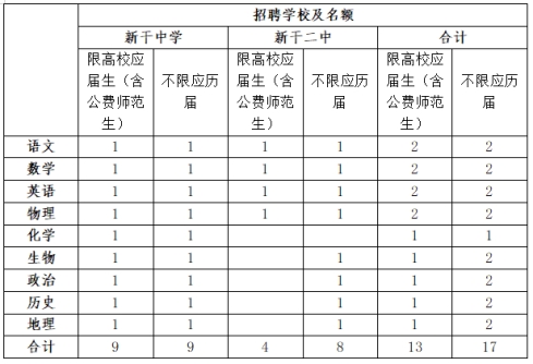 新干縣面向高層次人才公開招聘普通高中教師工作領導小組