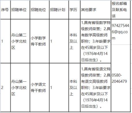 2.報(bào)名辦法:報(bào)名人員下載并填妥《舟山市教育局教師崗位高層次緊缺專業(yè)人才報(bào)名表》(見附件),《報(bào)名表》WORD版電子稿及報(bào)名所需佐證材料(須掃描成jpg格式)一并打包發(fā)送郵件至指定郵箱。