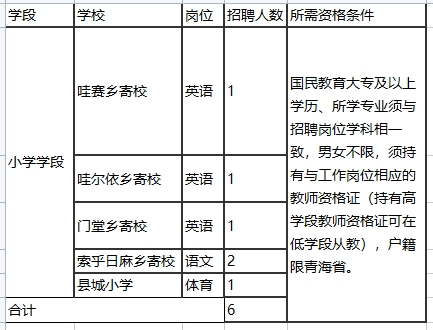 為保證教學(xué)工作正常開展,及時(shí)補(bǔ)充中小學(xué)教師,優(yōu)化教師隊(duì)伍結(jié)構(gòu),久治縣面向社會(huì)公開招聘編外聘用教師6名,F(xiàn)將有關(guān)事宜公告如下: