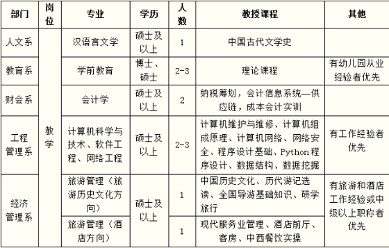 根據(jù)學(xué)院發(fā)展需要,在原招聘基礎(chǔ)上增加教師招聘數(shù)量,相關(guān)信息如下: