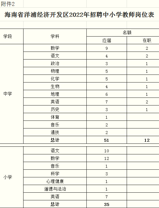 附件2:海南省洋浦經(jīng)濟開發(fā)區(qū)2022年招聘中小學(xué)教師崗位表