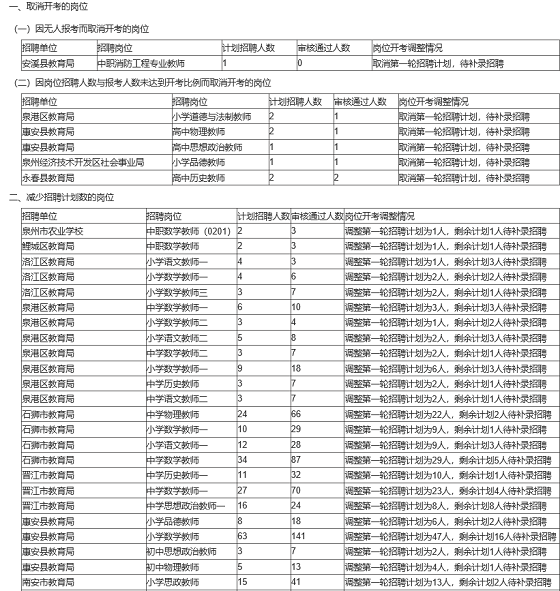 2022福建泉州市公辦學(xué)校公開(kāi)招聘新任教師部分崗位招聘計(jì)劃調(diào)整公告