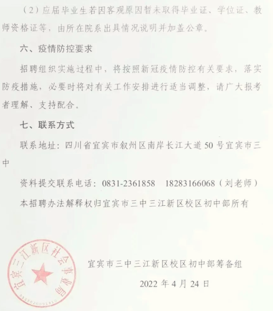 宜賓市三中三江新區(qū)校區(qū)初中部將于2022年9月正式起航,是您成就教育夢想、實現(xiàn)人生價值的理想選擇,現(xiàn)竭誠歡迎全國各地有志于教育事業(yè)的精英教師們傾情加盟!