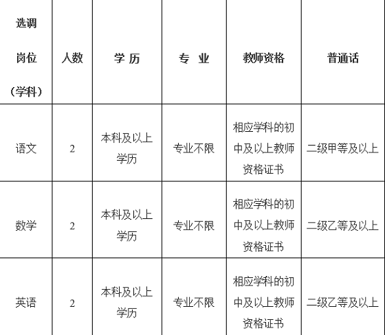 1、具有大學(xué)本科及以上本專業(yè)畢業(yè)學(xué)歷和初級中學(xué)及以上教師資格證書。