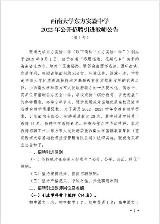 2022年海南西南大學(xué)東方實(shí)驗(yàn)中學(xué)招聘引進(jìn)教師公告【20人】