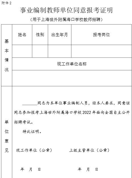 (5)事業(yè)編制教師需提供所在學(xué)校和當(dāng)?shù)亟逃姓鞴懿块T出具的同意參與我校公開招聘的證明。
