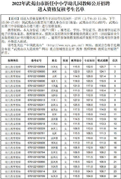 2022福建南平武夷山市新任教師公開招聘進(jìn)入資格復(fù)審名單公告