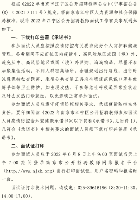 附件1:2022年江寧區(qū)公開招聘教師參加面試人員健康承諾書.docx.docx