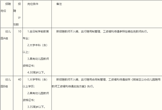 銅官區(qū)面向社會公開招聘幼兒園教師50名(見下表)。